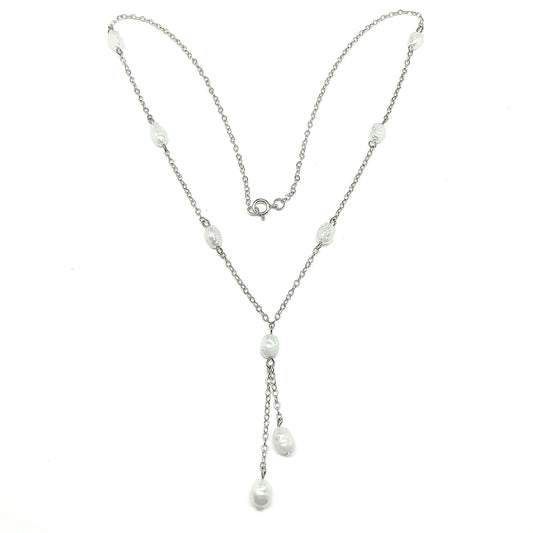 Elegant Pearl Sterling Silver Y-chain Tassel Necklace