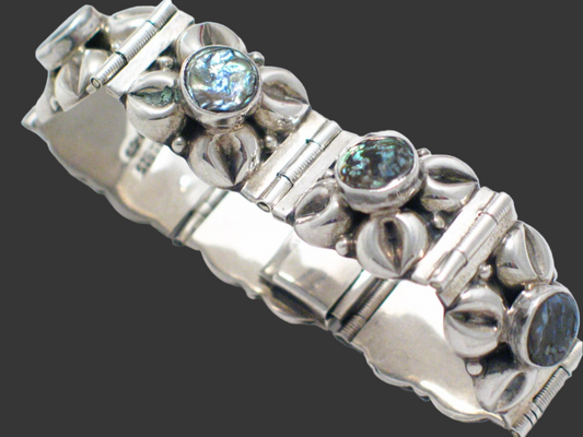 Wide Sterling Silver Abalone Coffee Bean Design Tennis Bracelet 7 1/2