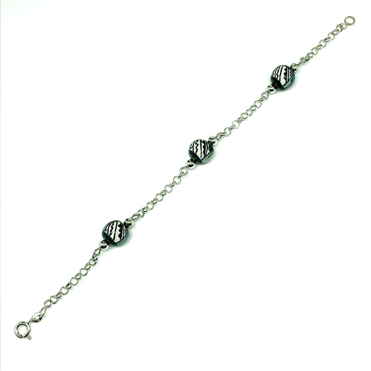 Italian Sterling Silver Porcelain Bead Station Bracelet 5.75 -6"