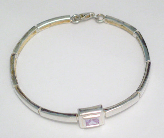 Sterling Silver Shimmery Pink Cubic Zirconia Tennis Bracelet 7.5"