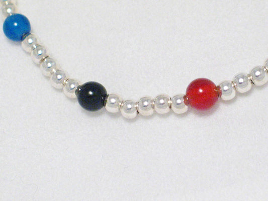 Sterling Silver Symbolic Multi Color Bead Ball Chain Bracelet 7.25"