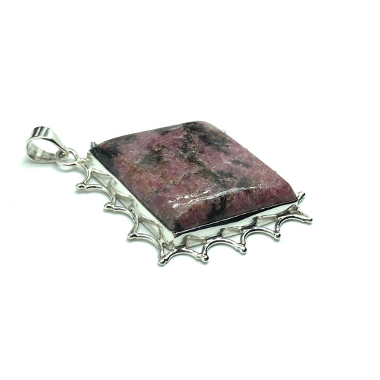 Big Unique Rhodonite Stone Sterling Silver Pendant
