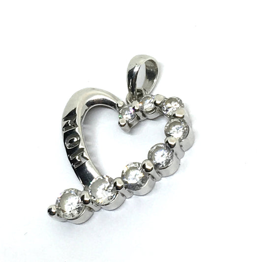 "Mom" cutout style Sterling Silver Shimmery Cz Heart Pendant