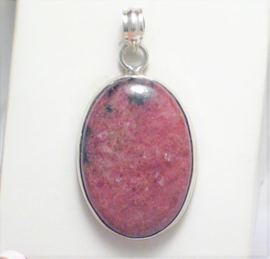 Sterling Silver Ruby Pink Rhodonite Stone Pendant