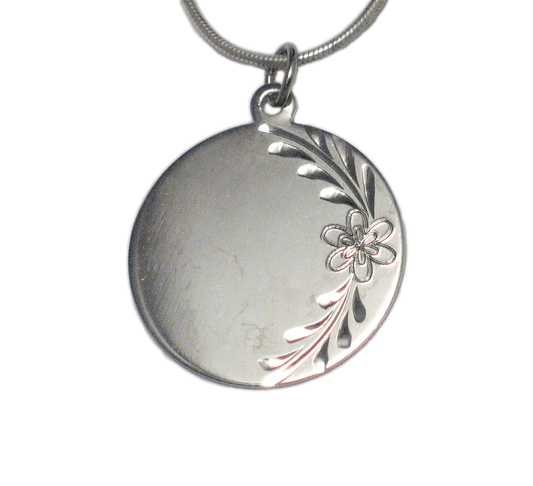 16" Sterling Silver Etched Floral Design Engraveable Disc Pendant Necklace