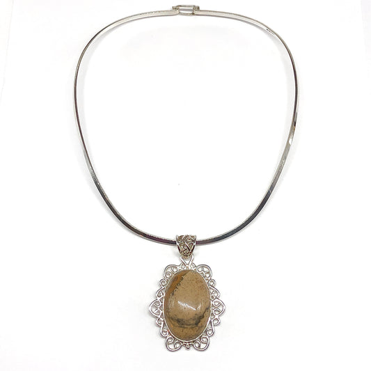 Sterling Silver Oval Brown Picture Jasper Stone Pendant