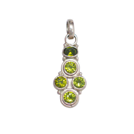 Sterling Silver Shimmery Olive Green Peridot Cz Cluster Pendant