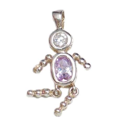 Sterling Silver Pink Birthstone Boy / Girl Pendant