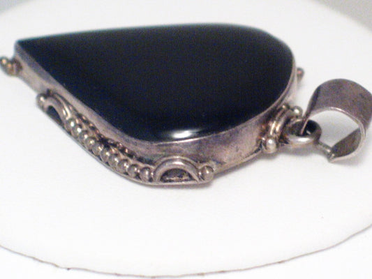 Big Sterling Silver Black Agate Stone Focal Pendant
