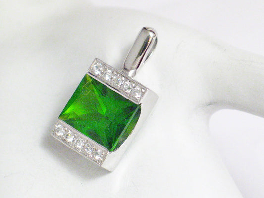 Sterling Silver Vibrant Green Geometric Square Cubic Zirconia Stone Pendant