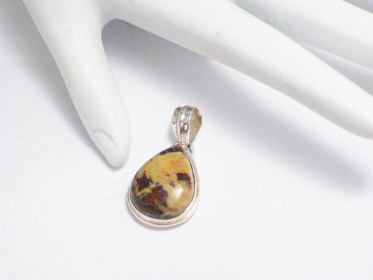 Sterling Silver Teardrop Design Brown Matrix Stone Pendant