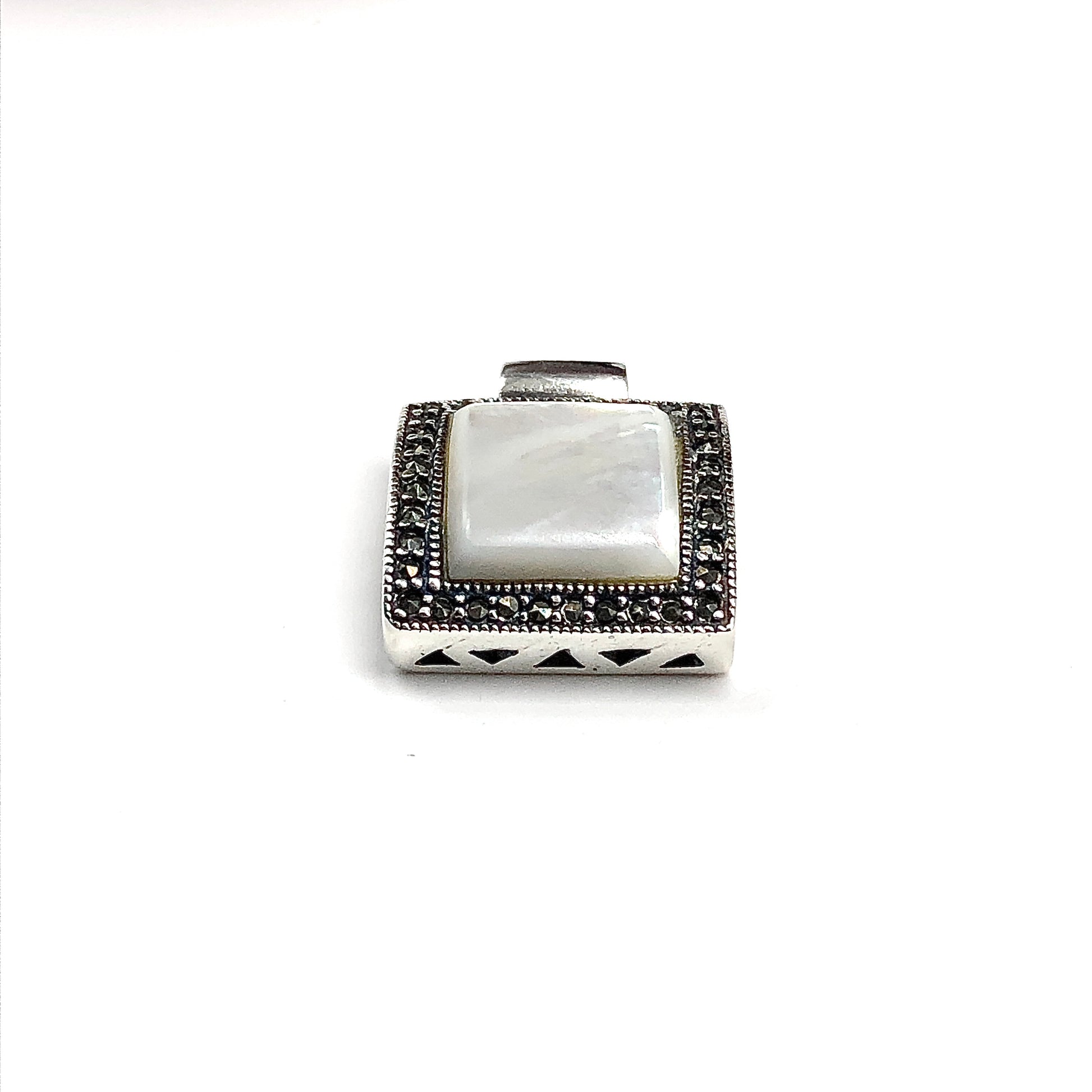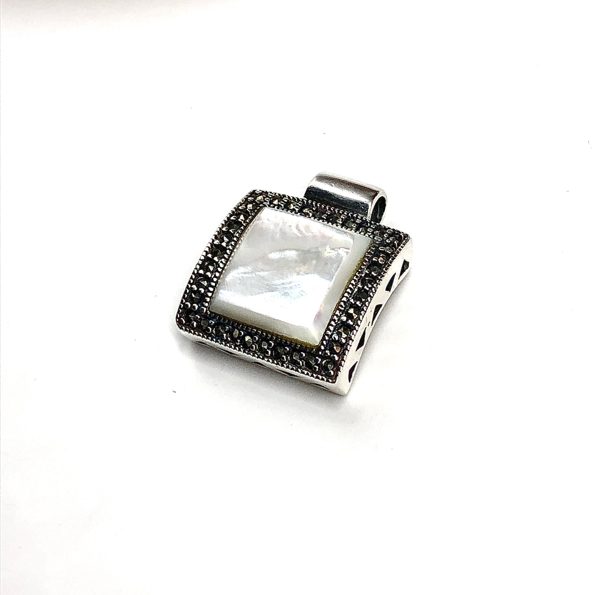 Mother of Pearl Marcasite Stone Sterling Silver Pendant