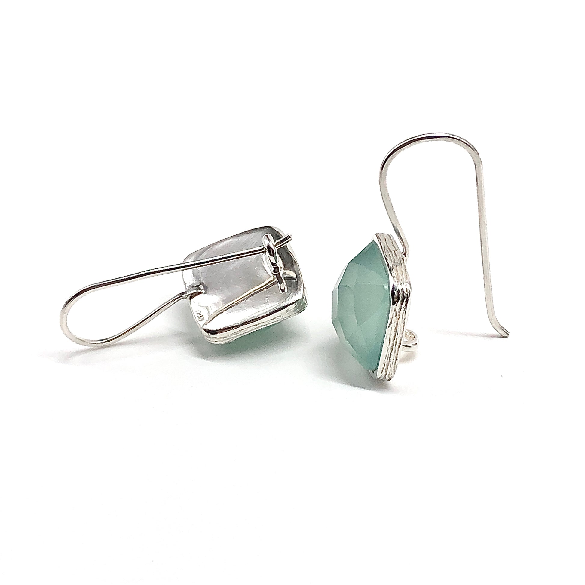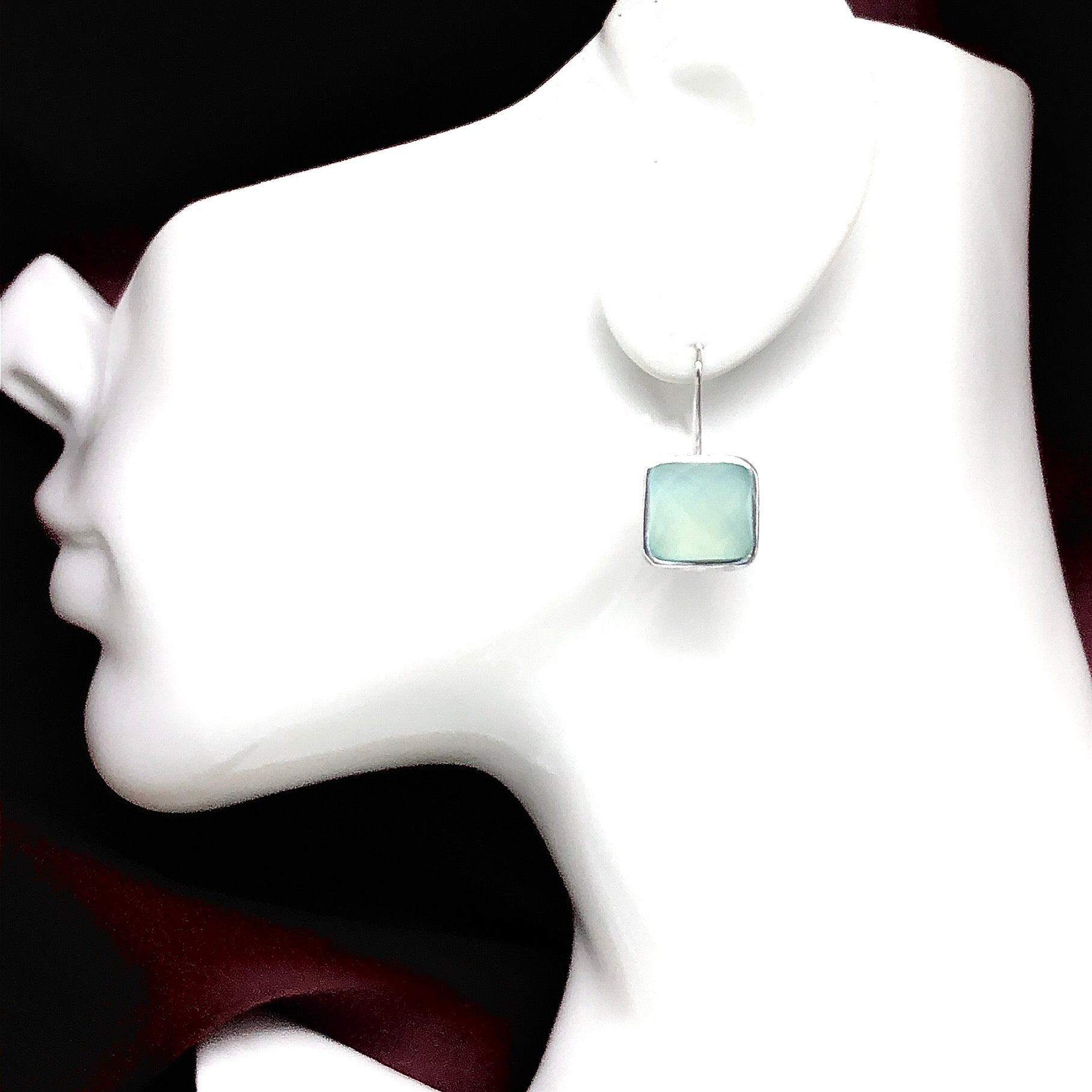 Rose cut Chalcedony Stone Square Drop Sterling Silver Earrings